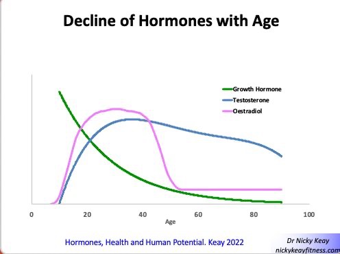 Balanced testosterone also supports a lean body. Levels naturally decline between ages 20–40, and fall further by menopause.